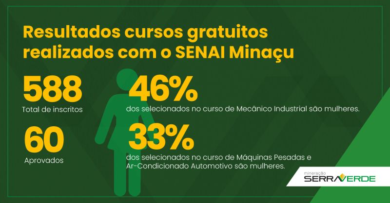 Celebramos a participação de 588 inscritos nos cursos gratuitos realizados com o SENAI Minaçu!