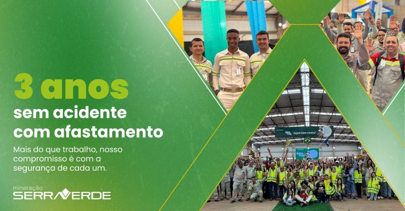Mineração Serra Verde celebrates a very important milestone: 3 years without accidents resulting in lost time. This result demonstrates the commitment of the company and each employee to putting safety first, ensuring an increasingly responsible and protected work environment.
